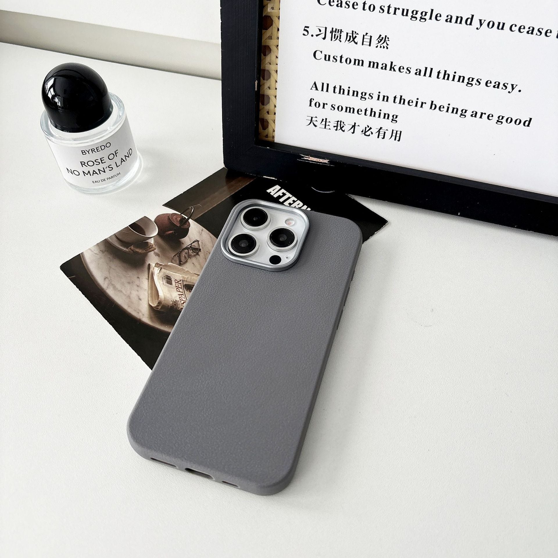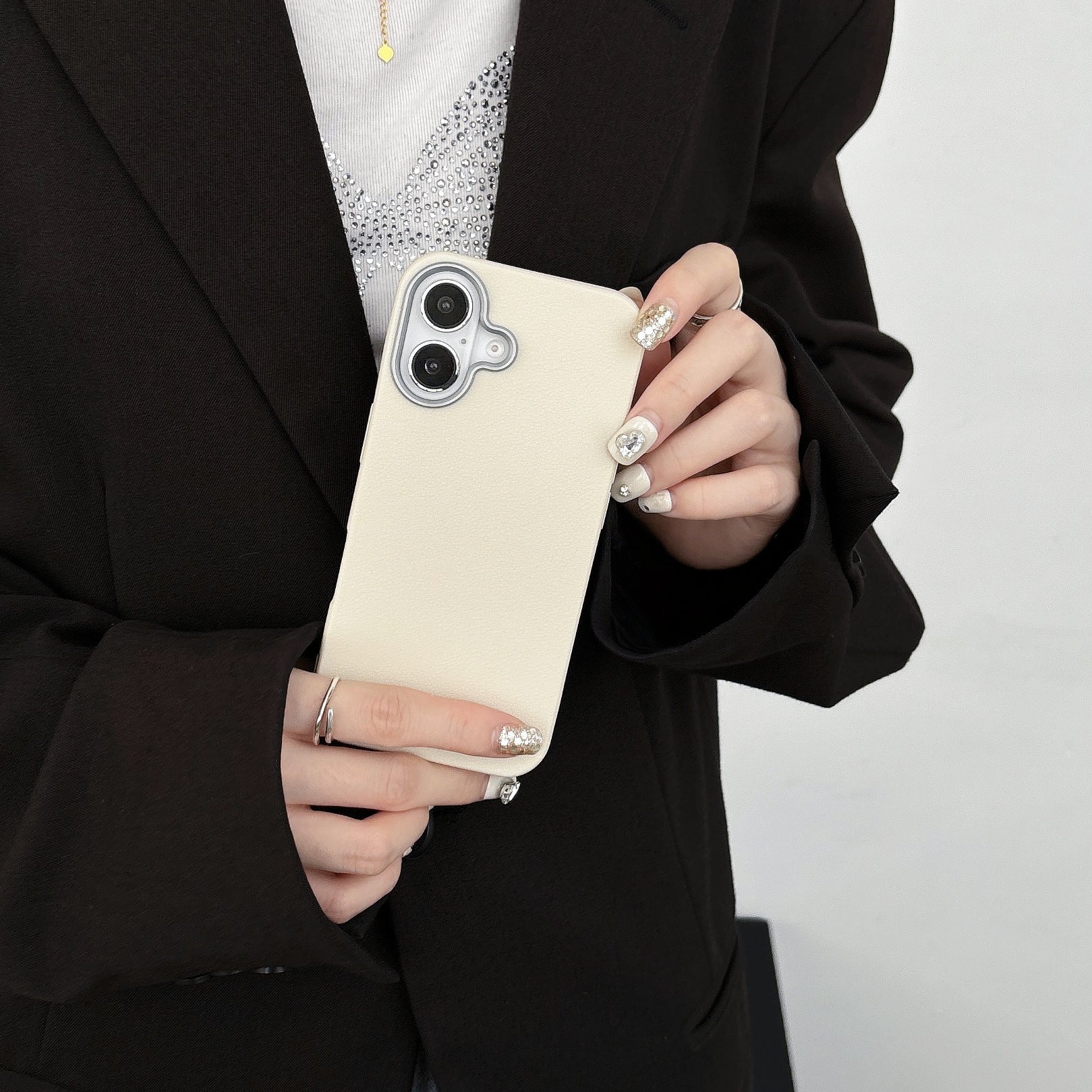 The case features a soft leather-texture back panel that provides a smooth, anti-slip grip, along with a metal camera ring for added protection around the lenses. Its slim and lightweight design ensures your phone stays pocket-friendly while offering reliable protection against scratches and daily wear.Perfect for those who prefer a clean, classy, and minimal aesthetic without adding bulk.