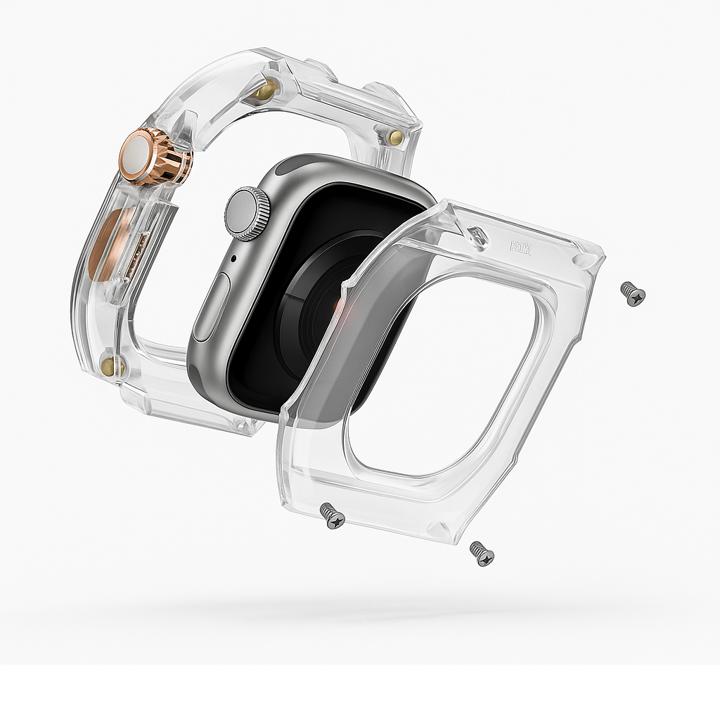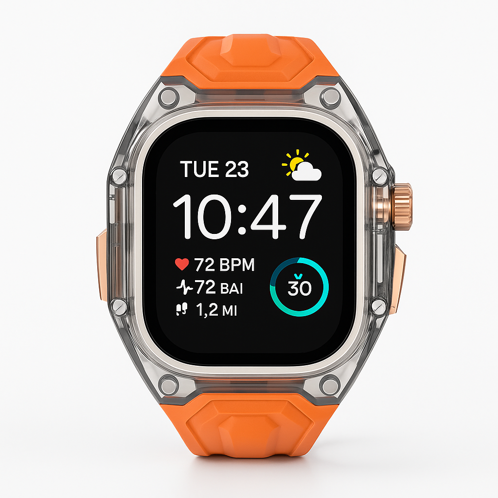Stand out with this rugged transparent protective case and striking orange strap for Apple Watch. Built for durability and a sporty lifestyle, it offers full-body protection against shocks, scratches, and accidental drops while keeping your watch’s sleek design visible. The soft yet sturdy silicone strap ensures all-day comfort, making it perfect for workouts, outdoor activities, and everyday wear. Designed with precise cutouts for the crown, buttons, and sensors, it guarantees effortless functionality with maximum protection.